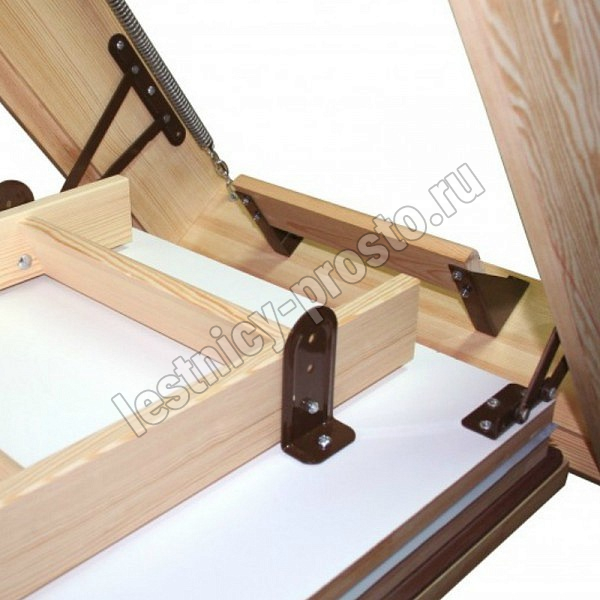 Максимально утеплённая чердачная лестница из массива сосны высокого качества. Складная, трёхсекционная (до 280 см) или четырехсекционная (до 335 см).