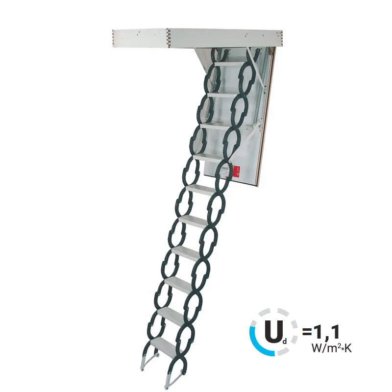 Ножничная чердачная лестницу HARMO, разработанную для удобного доступа к чердачным помещениям и адаптированную под широкий спектр требований. Это прочное и функциональное решение сочетает надежность металлических элементов и тепло натуральной древесины.