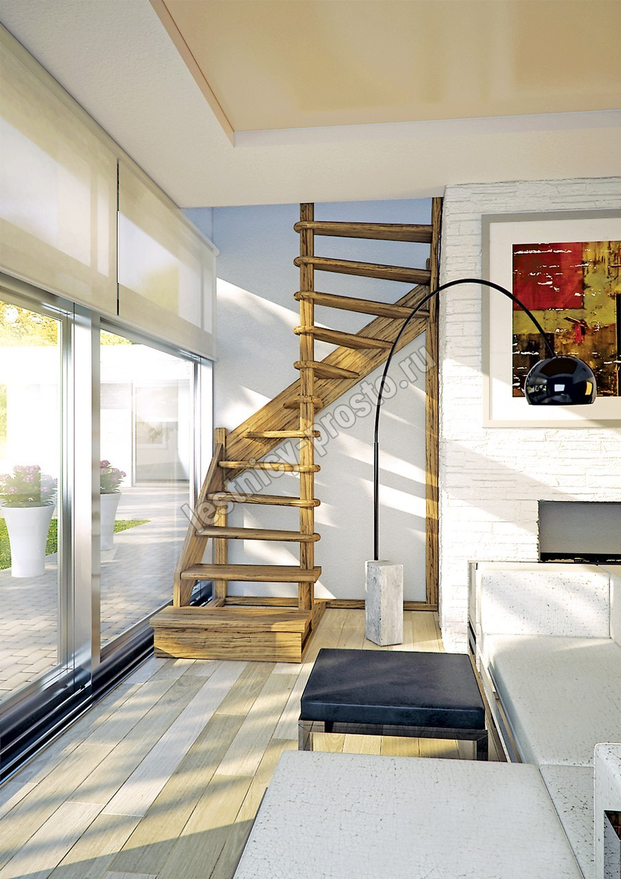 Деревянная межэтажная лестница ЛЕС-01 2525-2720 проем 1640-900, Сосна