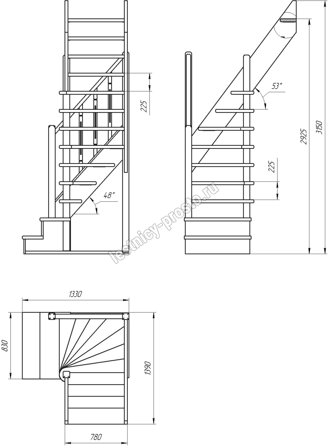 Высота лестницы 2925 - 3150 мм