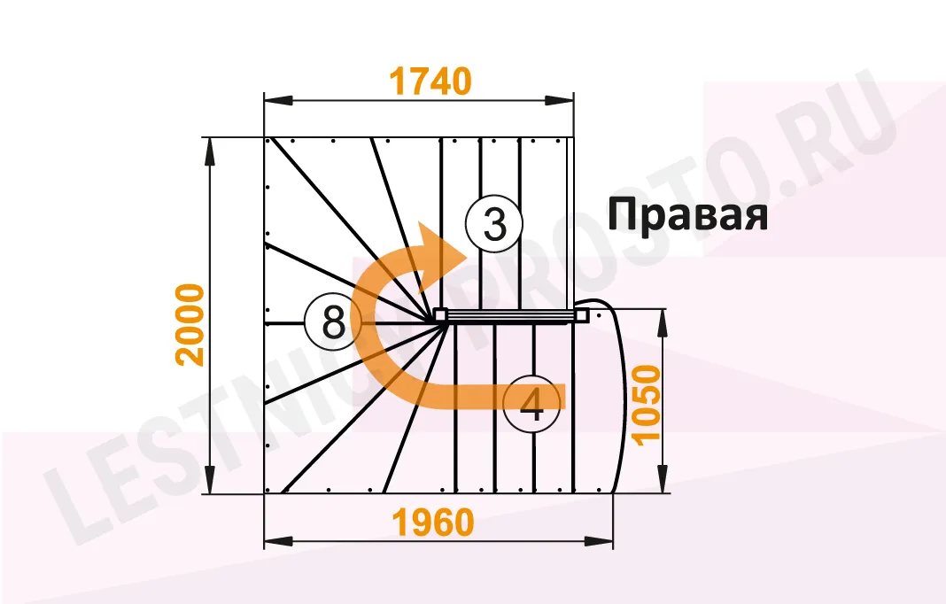 Классическая модель лестницы К-003м увеличенная под проём 2000 мм.