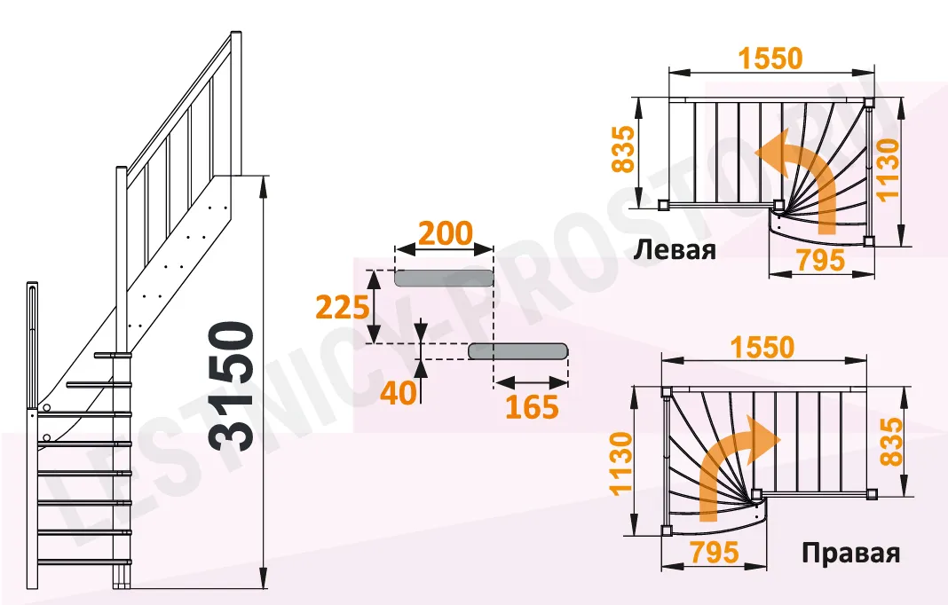 Высота лестницы 2900 - 3150