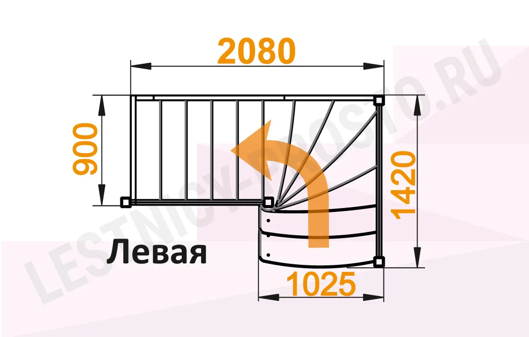 Схема лестницы ЛС-09М/2 с поворотом налево