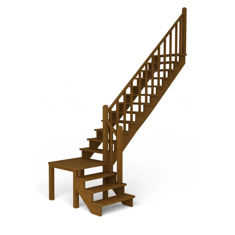 Ступени и поручень лестницы изготовлены из сращенного дуба, остальные элементы лестницы (тетивы, столбы, балясины...) из массива сосны. Возможно изготовление данной модели полностью из дуба. Базовый комплект включает в себя деревянные элементы лестницы и ограждения без какого-либо покрытия. Вы можете заказать у нас покраску лестницы в цвета, отвечающие особенностям вашего помещения.