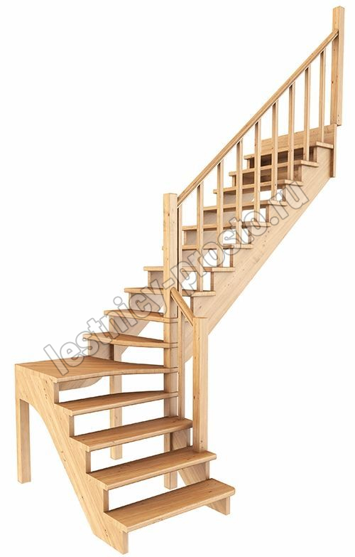 Ступени и поручень лестницы выполнены из дуба, остальные элементы из сосны. Возможно изготовление данной модели полностью из дуба. Базовый комплект включает в себя деревянные элементы лестницы и ограждения без какого-либо покрытия.