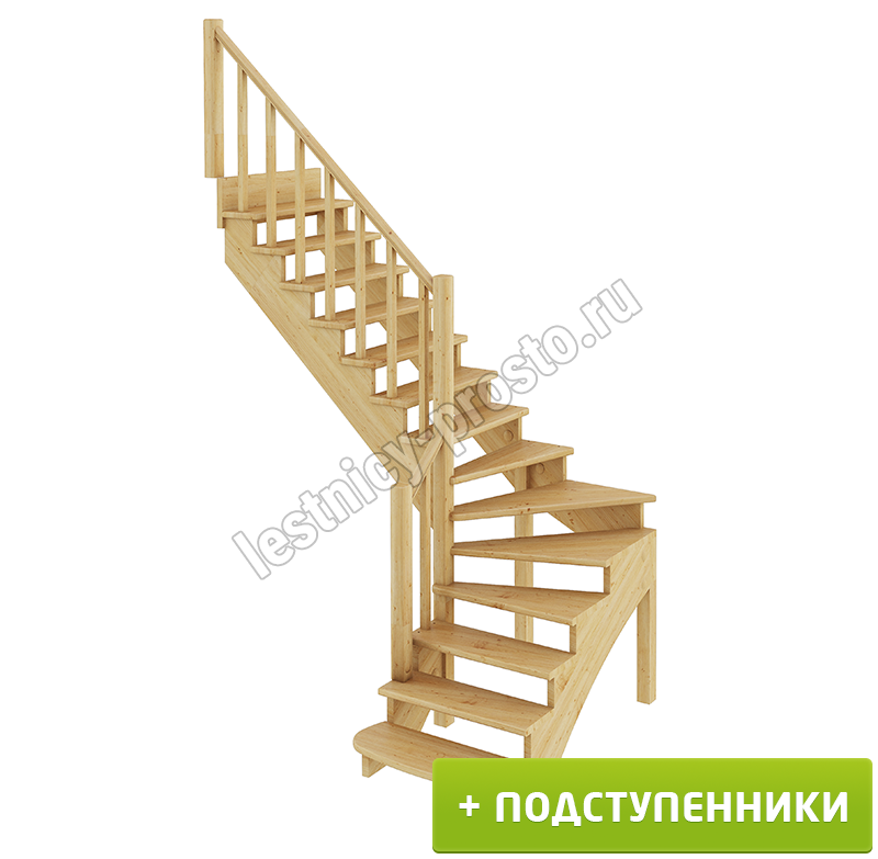 Лестница из сосны К-001М/2 под покраску с подступёнками