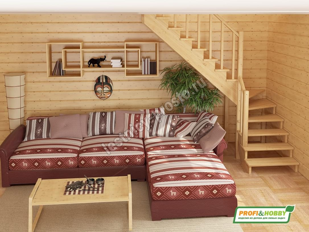 Базовый комплект включает в себя деревянные элементы лестницы и ограждения без какого-либо покрытия.