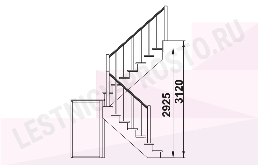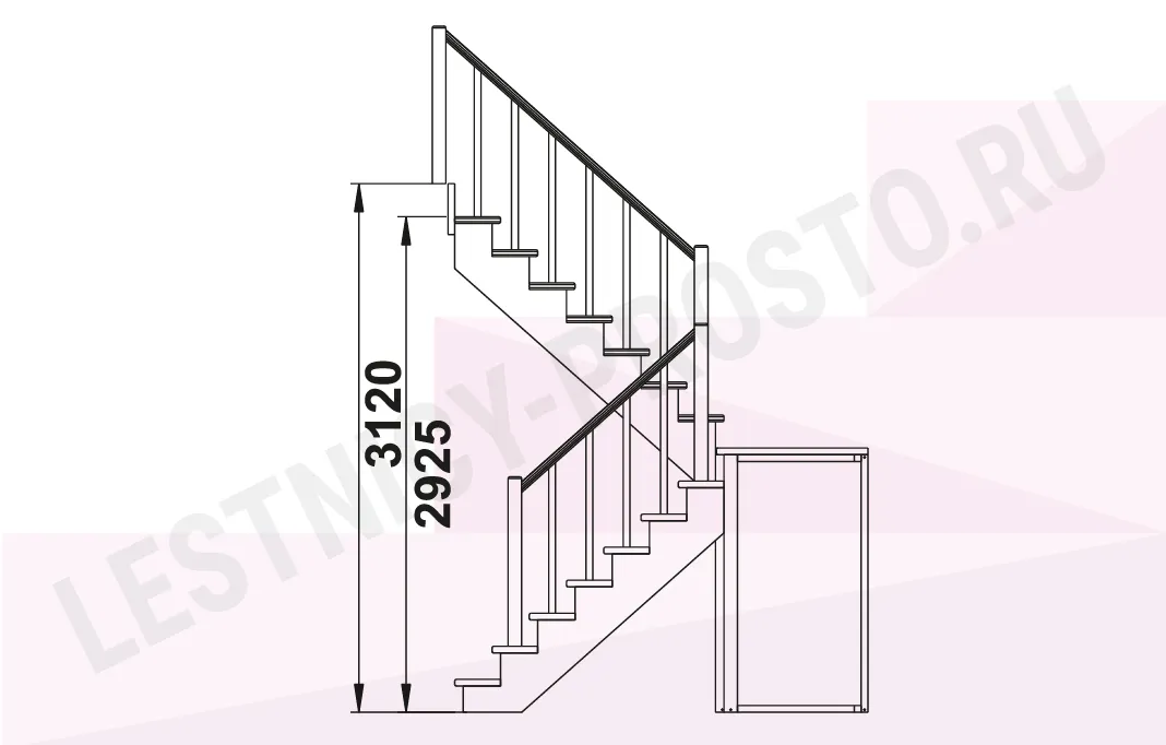 Лестница из сосны К-004М/1 с подступёнками под покраску