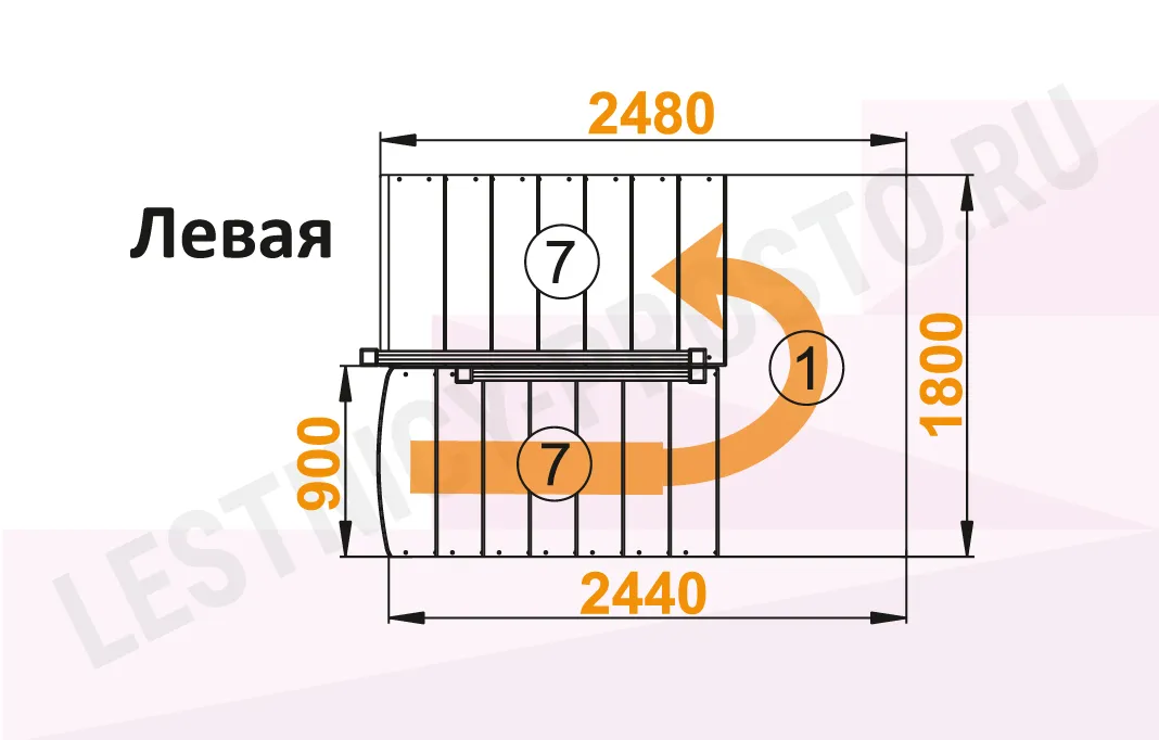 Обратите внимание! Данный вариант лестницы изготовлен из сосны эконом-класса, имеющей заметные серые/синие вкрапления цвета - это не отражается на прочности лестницы, но может быть заметно при покраске в светлые тона.