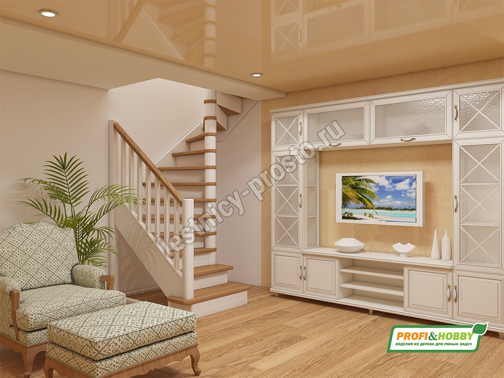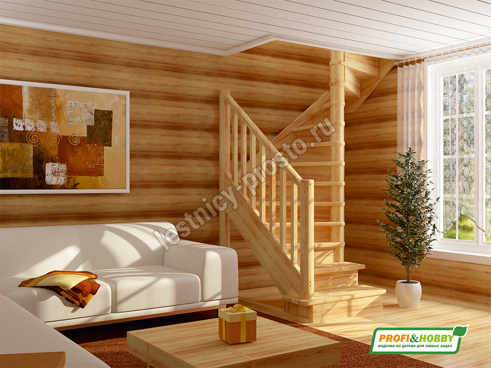 В производстве лестницы ЛС-05м под покраску используется сосна с небольшими изменениями цвета, что практически не влияет на ее механические свойства и почти незаметно при покраске в темные цвета. Базовый комплект включает в себя деревянные элементы лестницы и ограждения без какого-либо покрытия.