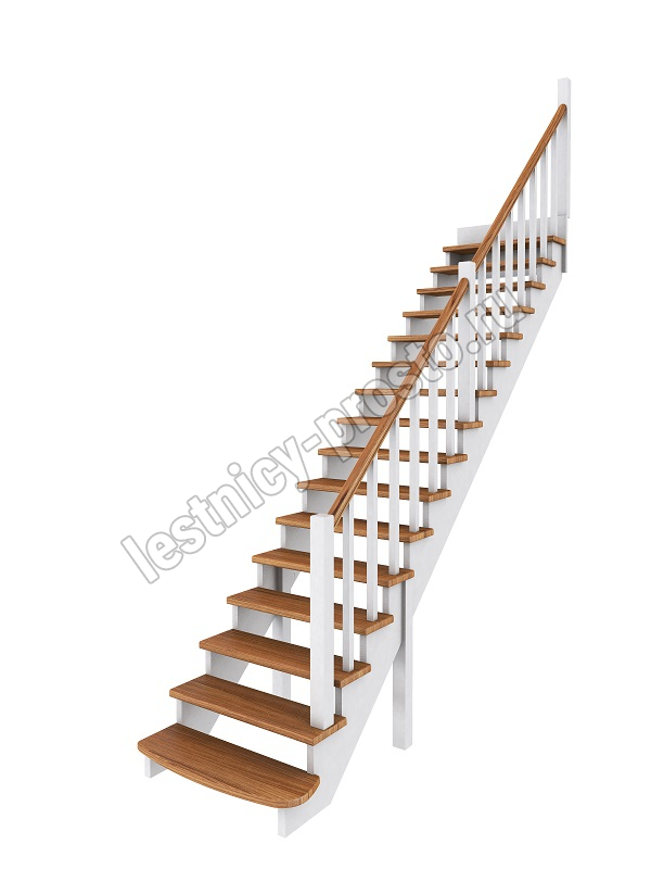 Базовый комплект включает в себя деревянные элементы лестницы и ограждения без какого-либо покрытия.