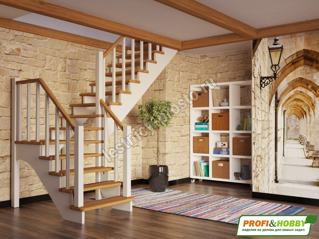 Ступени и поручень лестницы изготовлены из бука, остальные элементы из сосны. Возможно изготовление данной модели полностью из бука.