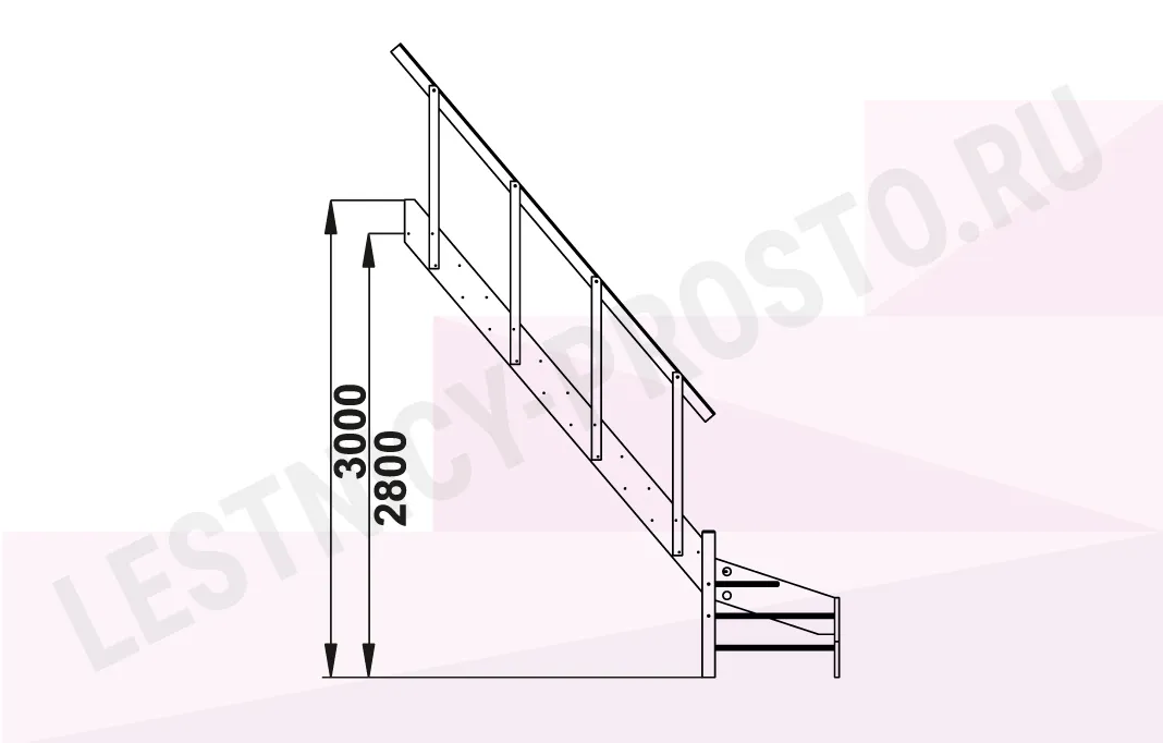 Базовая комплектация включает в себя элементы лестницы и ограждение без какого-либо покрытия.