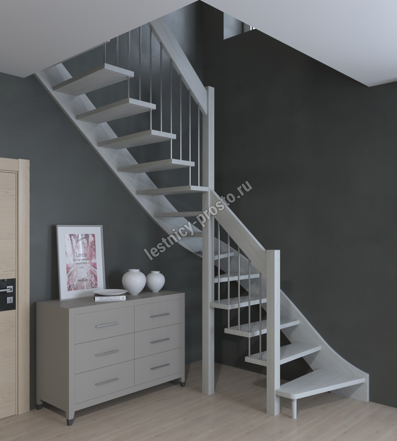 Лестница Prosto Console г-образная забежная дуб, h280 см