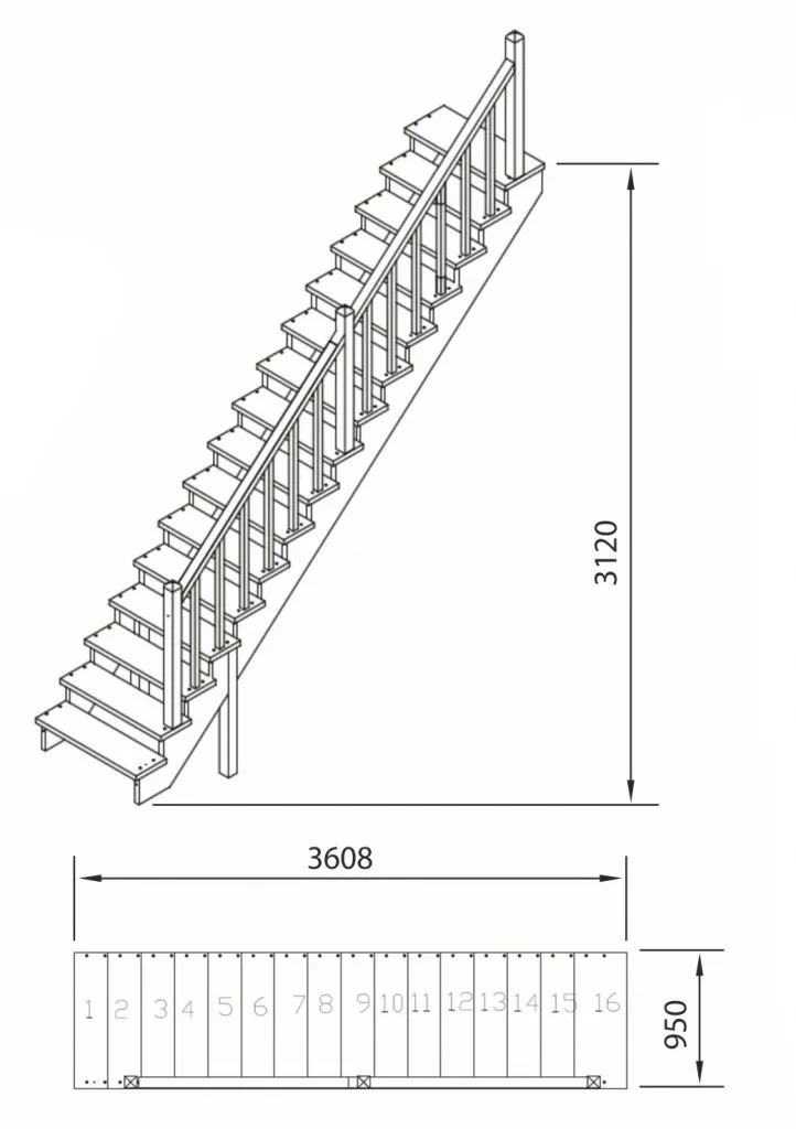 Высота лестницы 3120 - 3315 мм
