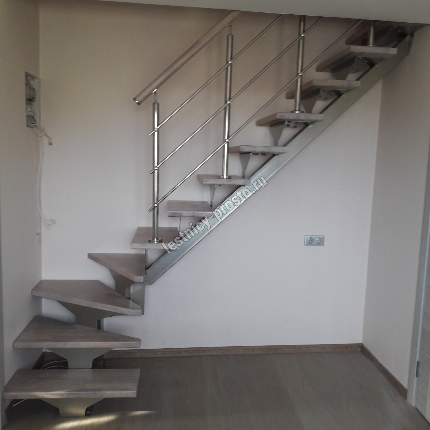 Буковый поручень, диаметром 50 мм. без какого либо покрытия - по желанию может быть окрашен вместе со ступенями,