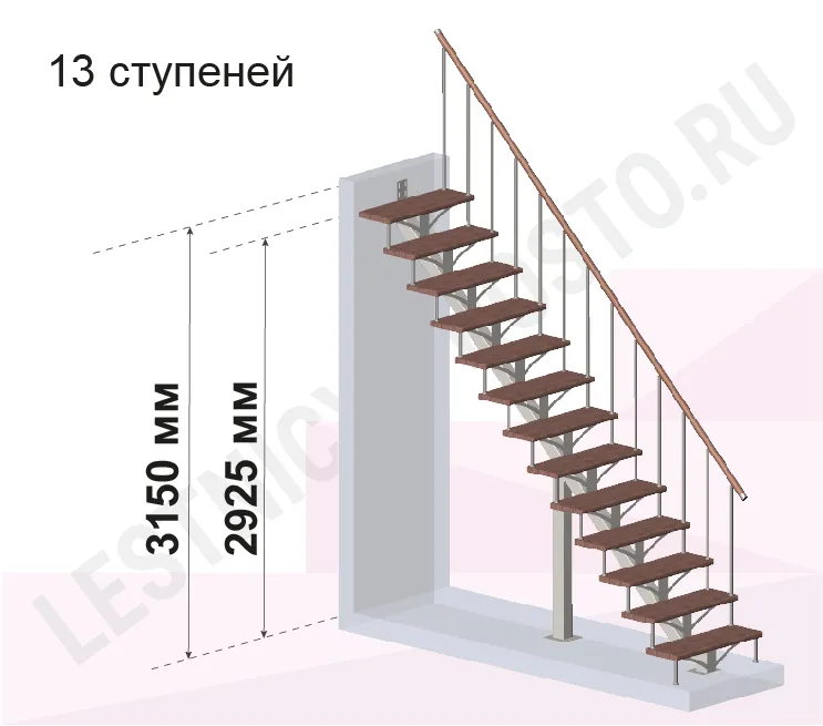 Лестница PROSTO MONO прямая, h315 см, ступени хвоя |