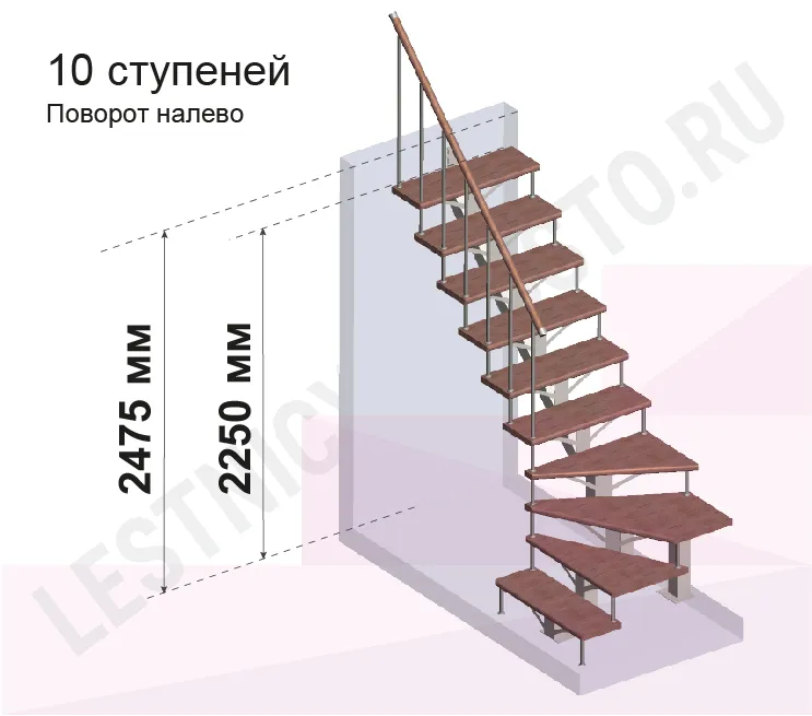 Лестница PROSTO MONO Г-образная h247.5 см, ступени хвоя