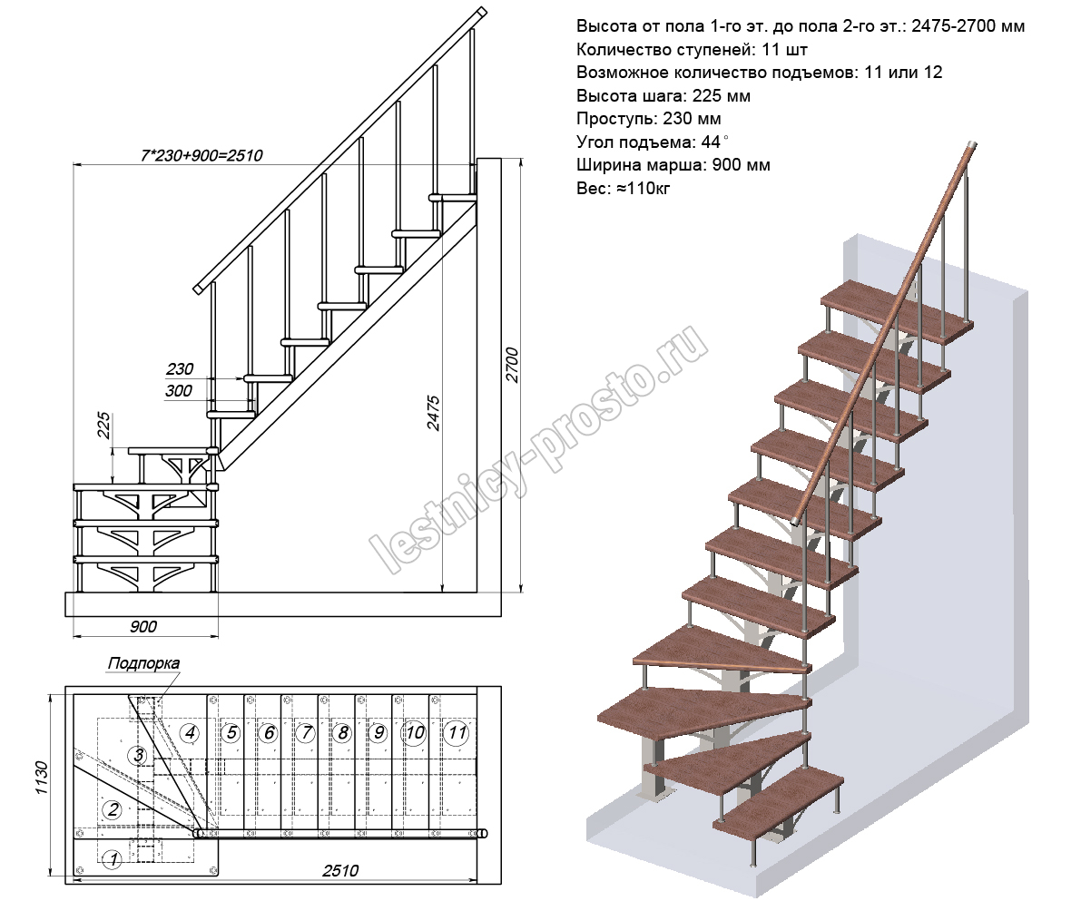 Высота лестницы 2475 - 2700 мм