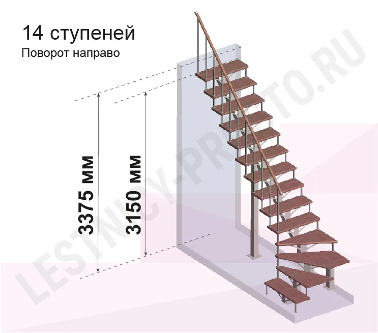 Лестница PROSTO MONO Г-образная h337.5 см, ступени хвоя