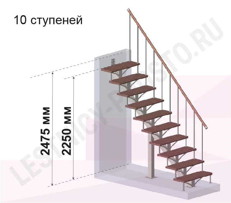 Лестница PROSTO MONO прямая, h247.5 см, ступени бук