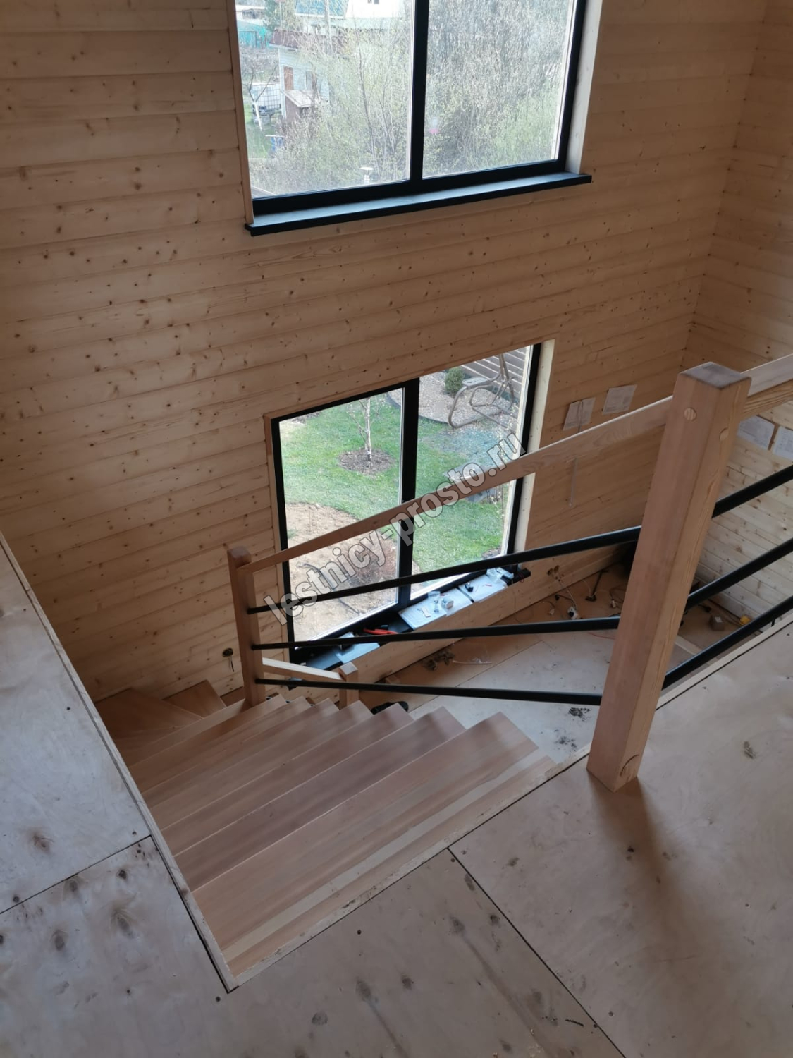 Лестница PROSTO MONO STEP TRINITY г-образная забежная, ступени берёза