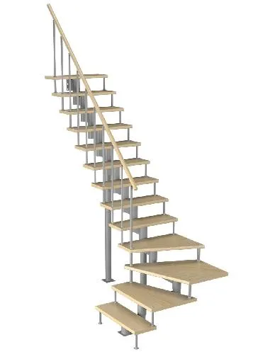 Поворот на 90° реализован посредством поворотных ступеней, высота поворота определяется параметрами вашего помещения и размерами проёма.