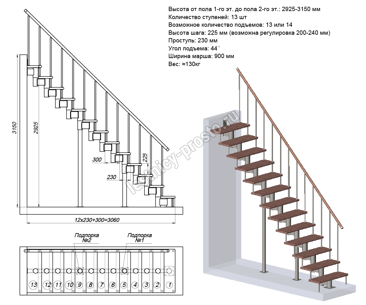 Стоимость указана за модульный каркас и ступени из сосны (ограждение покупается отдельно!)