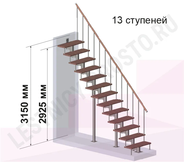 Модульная лестница PROSTO Module прямая, h292.5, бук |