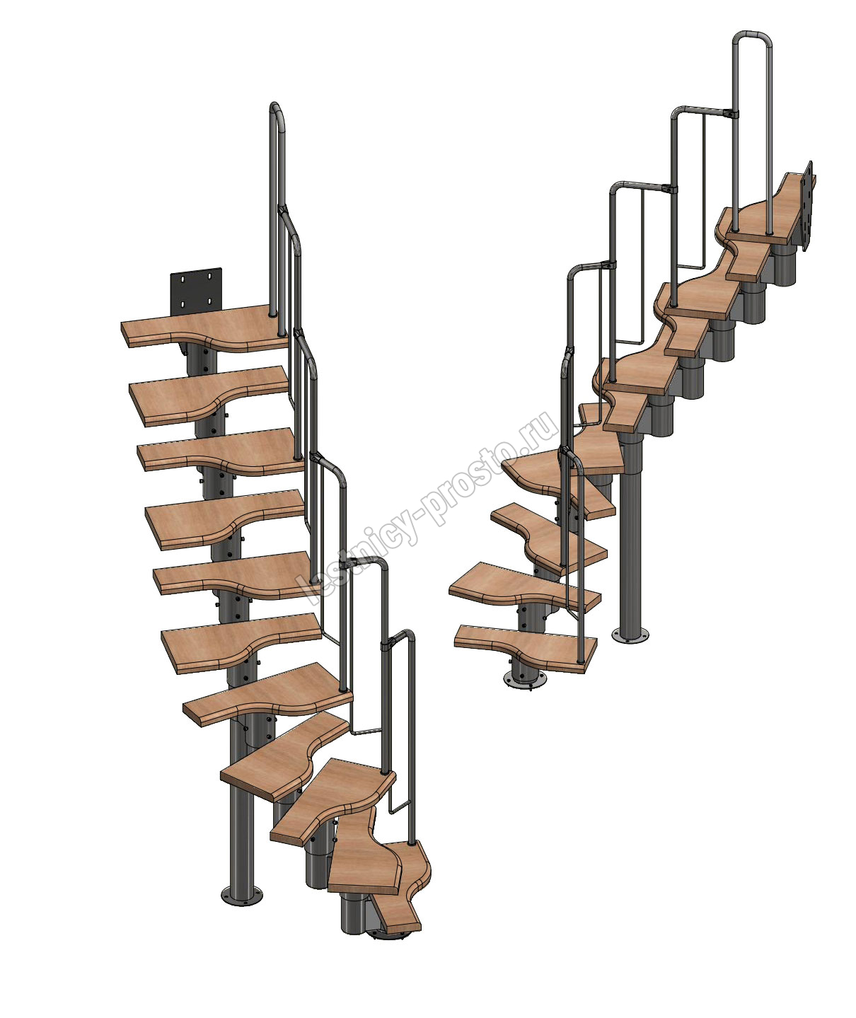 Лестница Prosto Urban Black гусиный шаг 600 мм, h198-288 см (11 ступеней), ясень