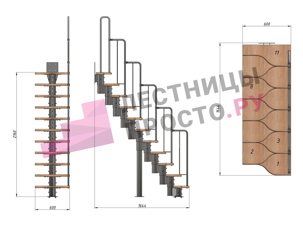 Лестница Prosto Urban Black гусиный шаг 600 мм, h198-288 см (11 ступеней)