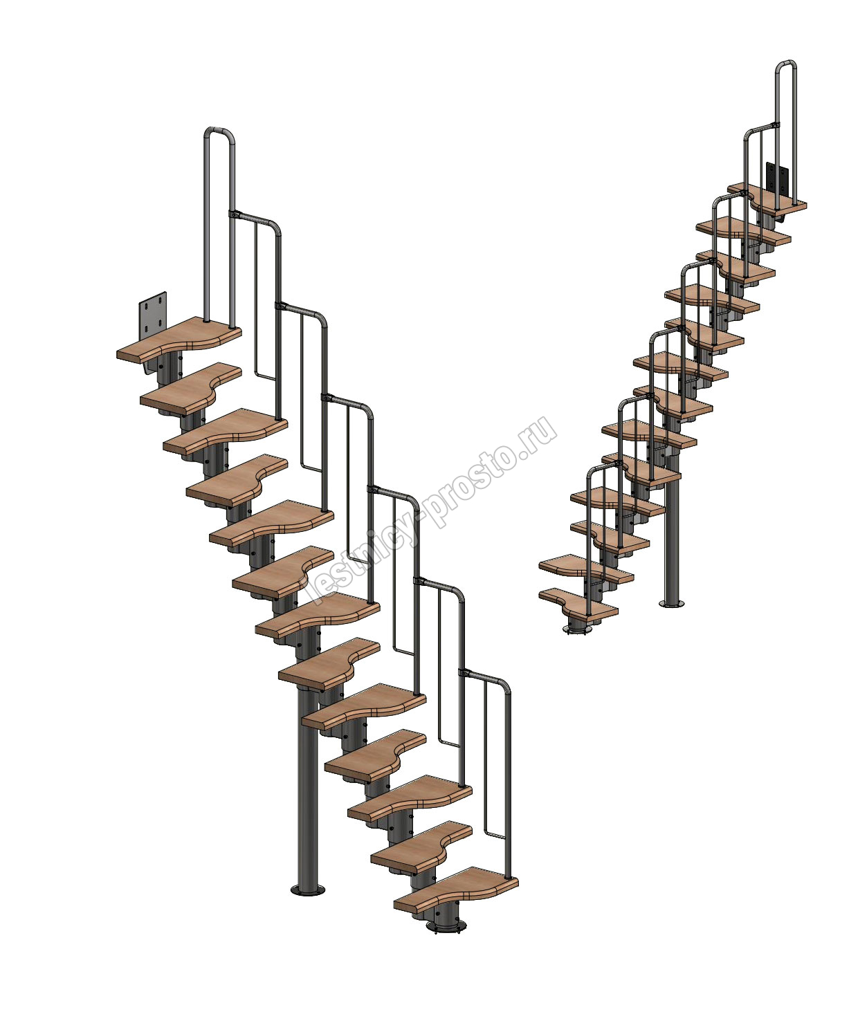 Лестница Prosto Urban Black гусиный шаг 600 мм, h234-336 см (13 ступеней)