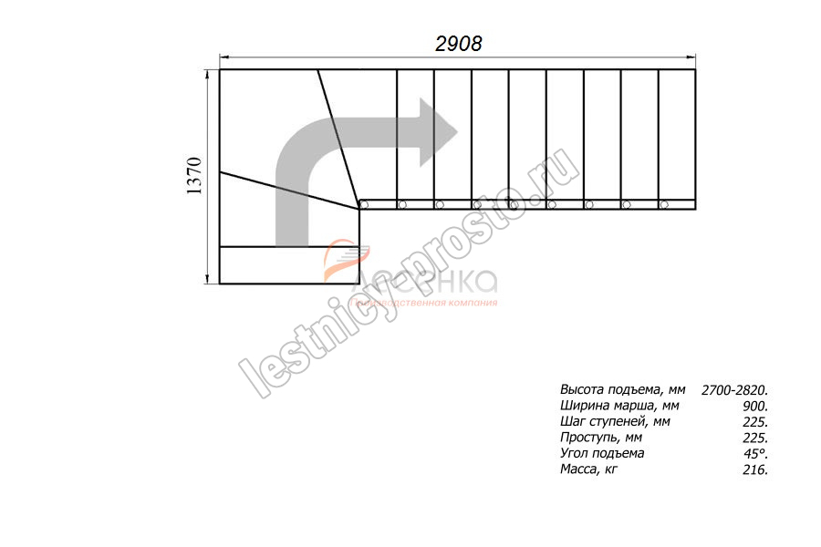 Модульная лестница Фаворит 225 2700-2820, Серый, Сосна, Крашеная, Без Ступений