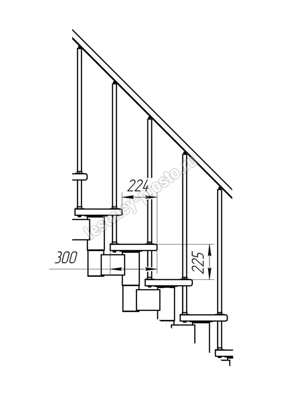 Модульная лестница Комфорт 225 3150-3290, Белый, Сосна, Нержавеющая сталь