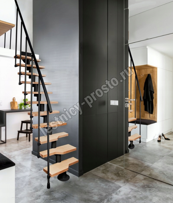 Модульная лестница Mini черная, светлая ольха |