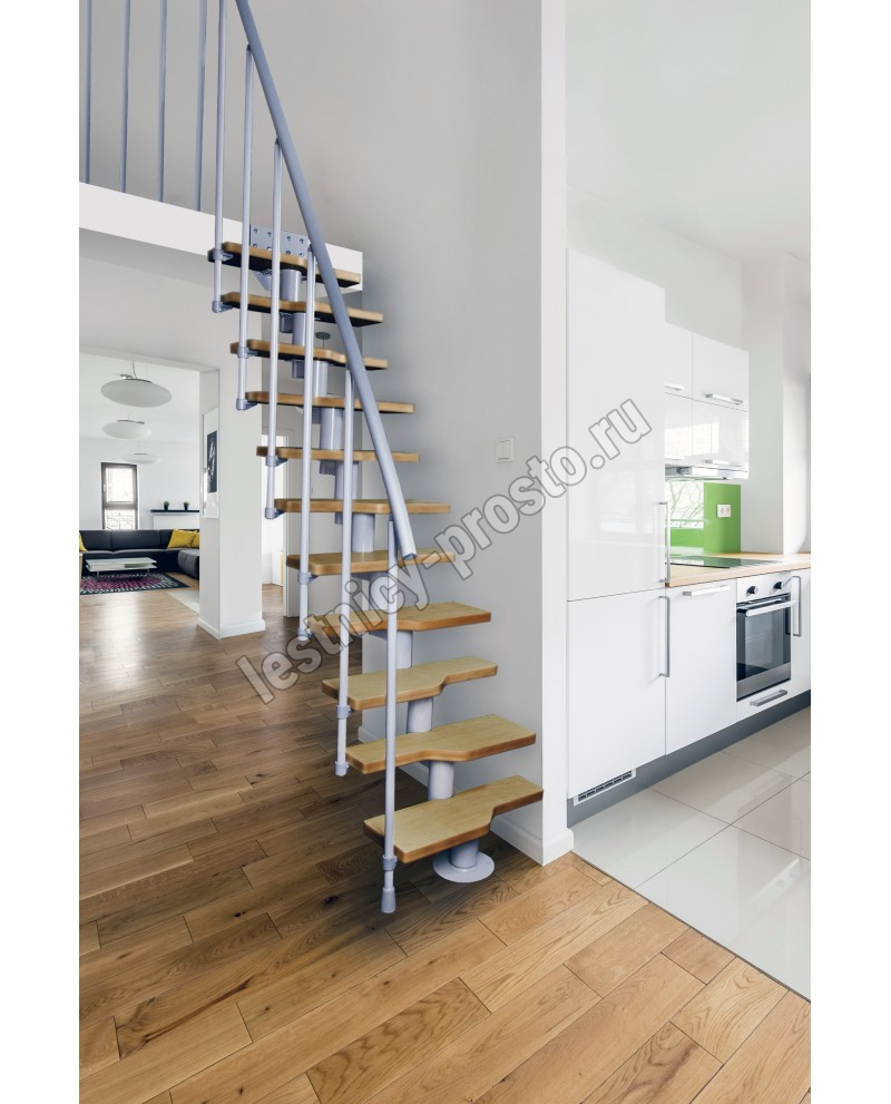 Модульная лестница Mini серебро, светлая ольха |