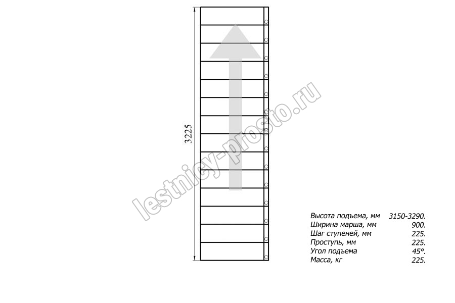 Модульная лестница Стандарт 3150-3290, Серый, Сосна, Крашеная
