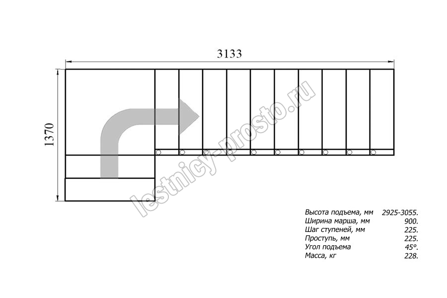 Модульная лестница Статус 225 2925-3055, Черный, Сосна, Нержавеющая сталь
