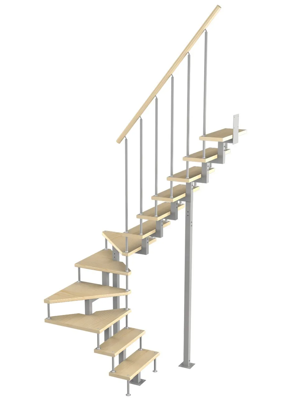 Модульная малогабаритная лестница Эксклюзив 2700-2925, Серый, Сосна, Крашеная, Без Ступений
