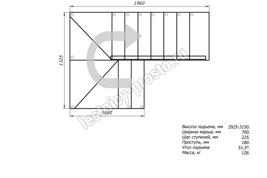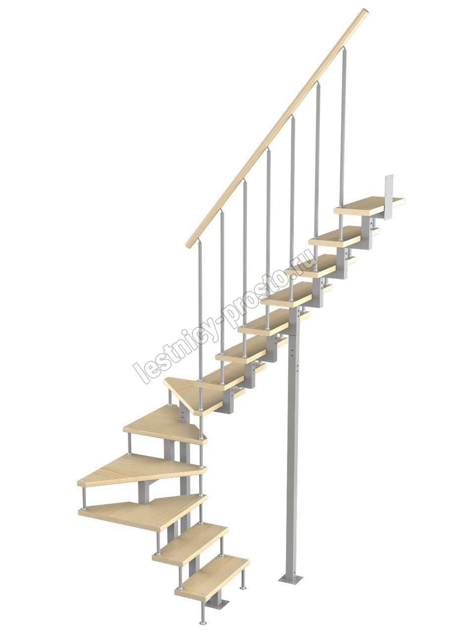 Модульная малогабаритная лестница Эксклюзив 2925-3150, Серый, Лиственница, Нержавеющая сталь