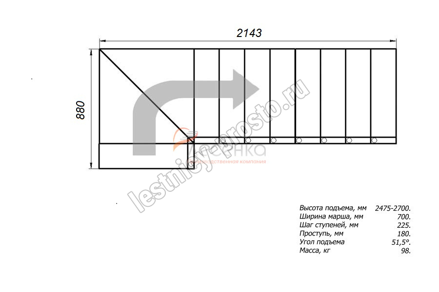Количество ступеней на первом и втором марше может меняться между собой в зависимости от размера проема, при этом общее количество ступеней не меняется!!!