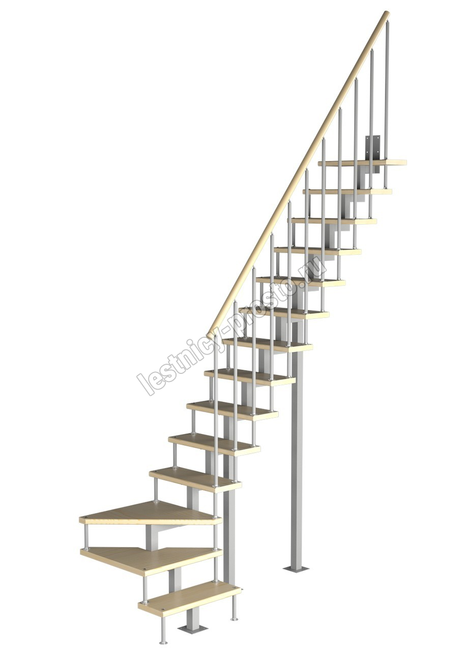 Модульная малогабаритная лестница Компакт 3150-3375, Белый, Сосна, Крашеная, Без Ступений