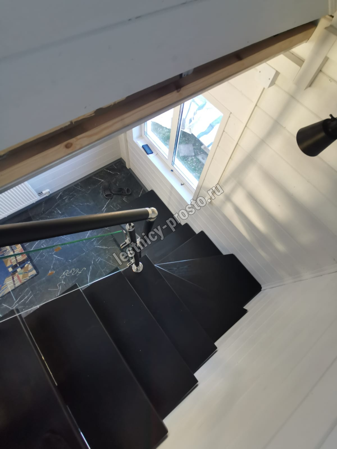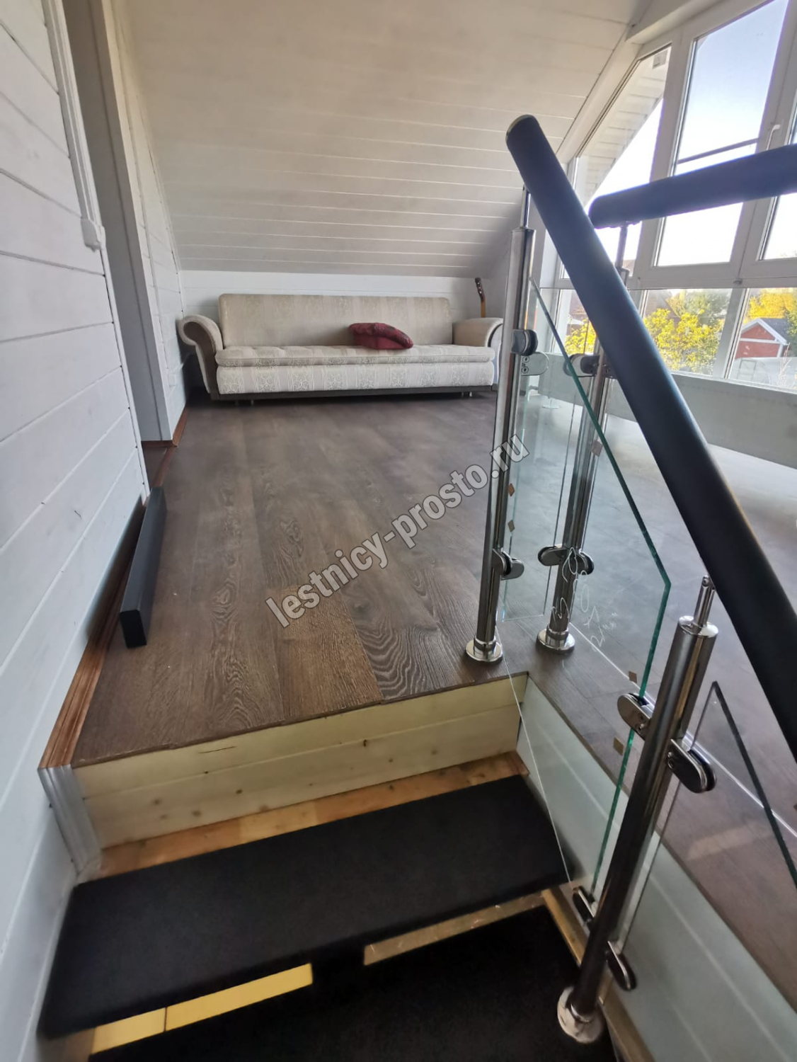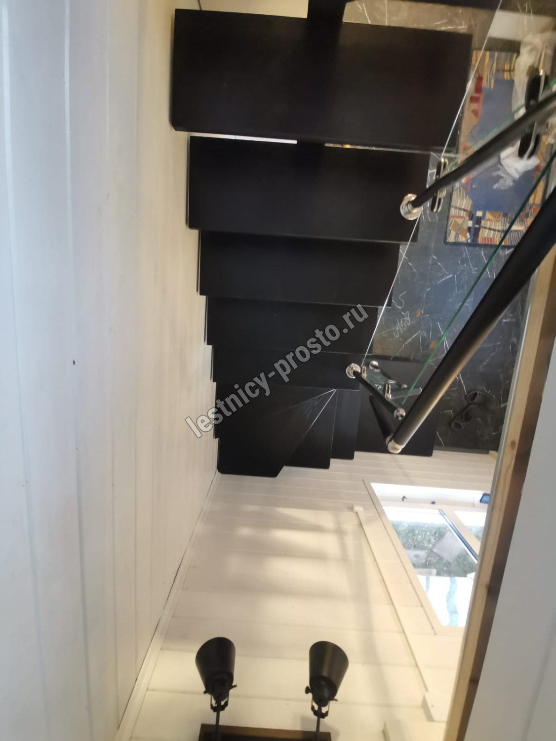 Стеклянная лестница на металлическом каркасе LP-3103