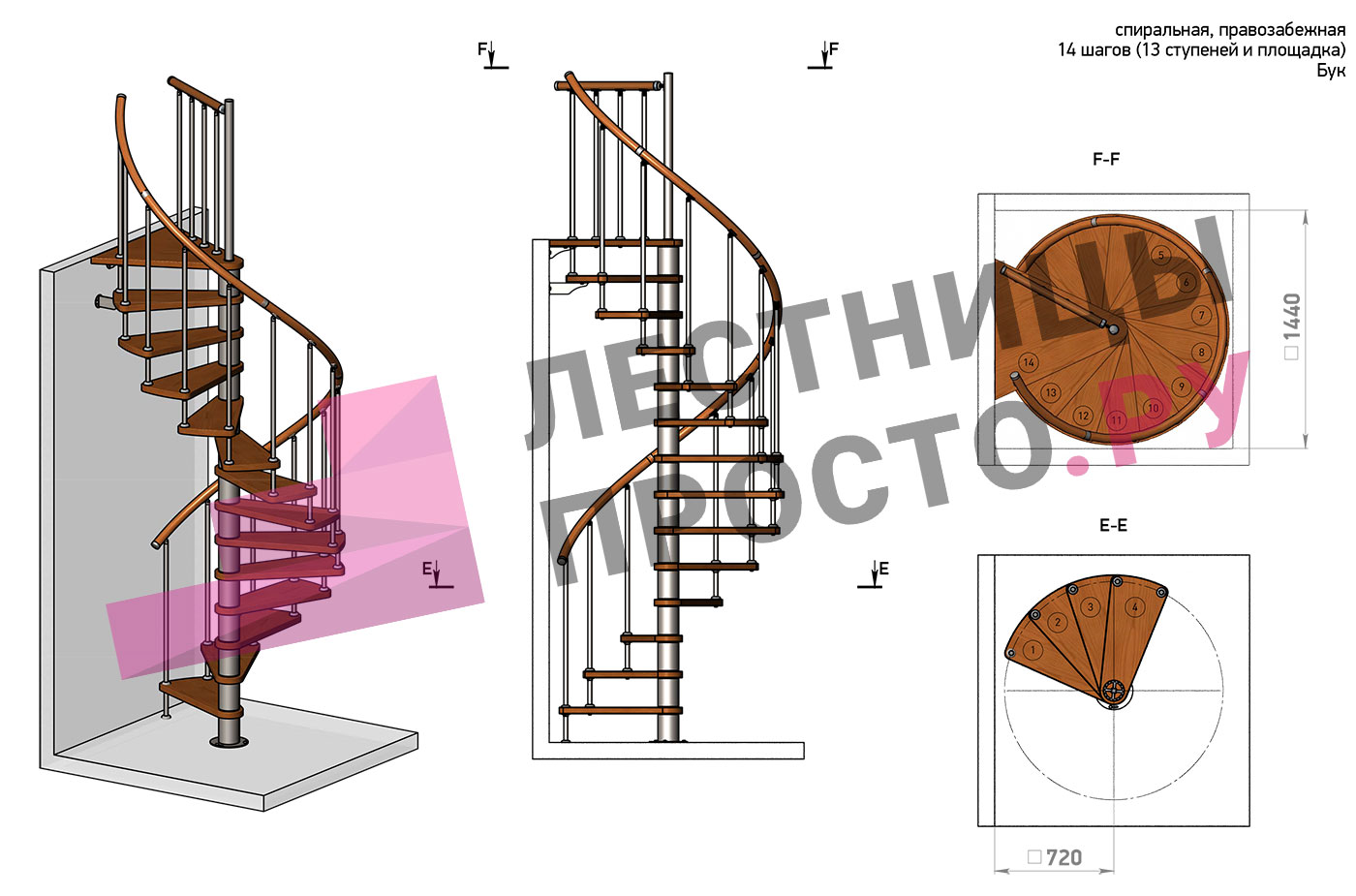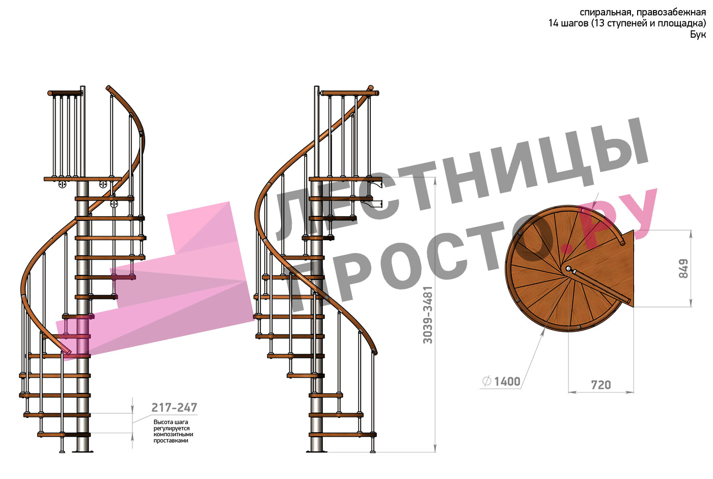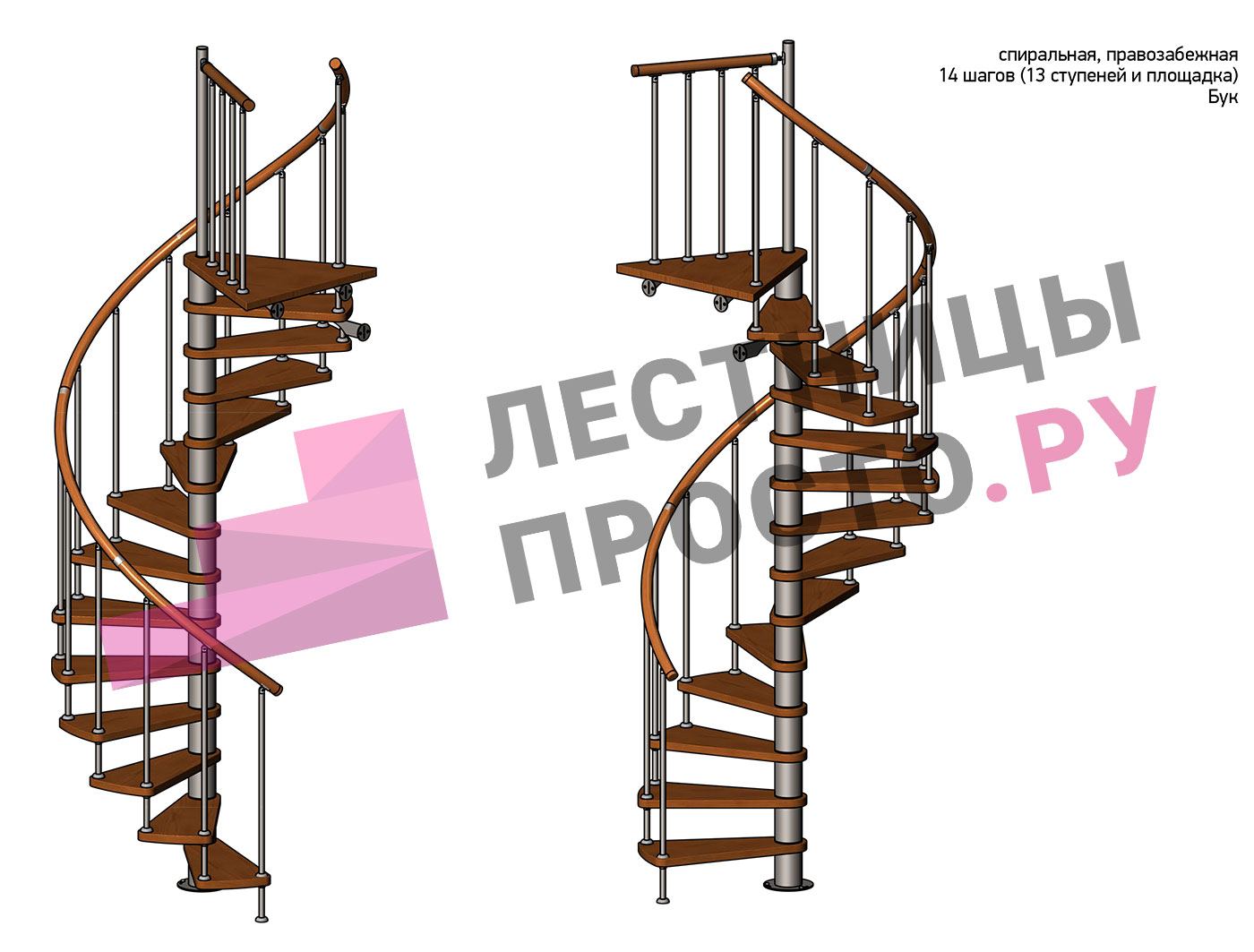 Винтовая лестница Prosto Spiral Black D140см, h303.9-348,1 см, бук