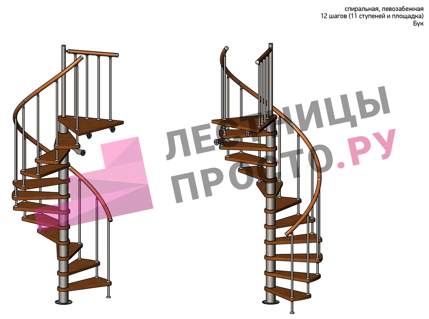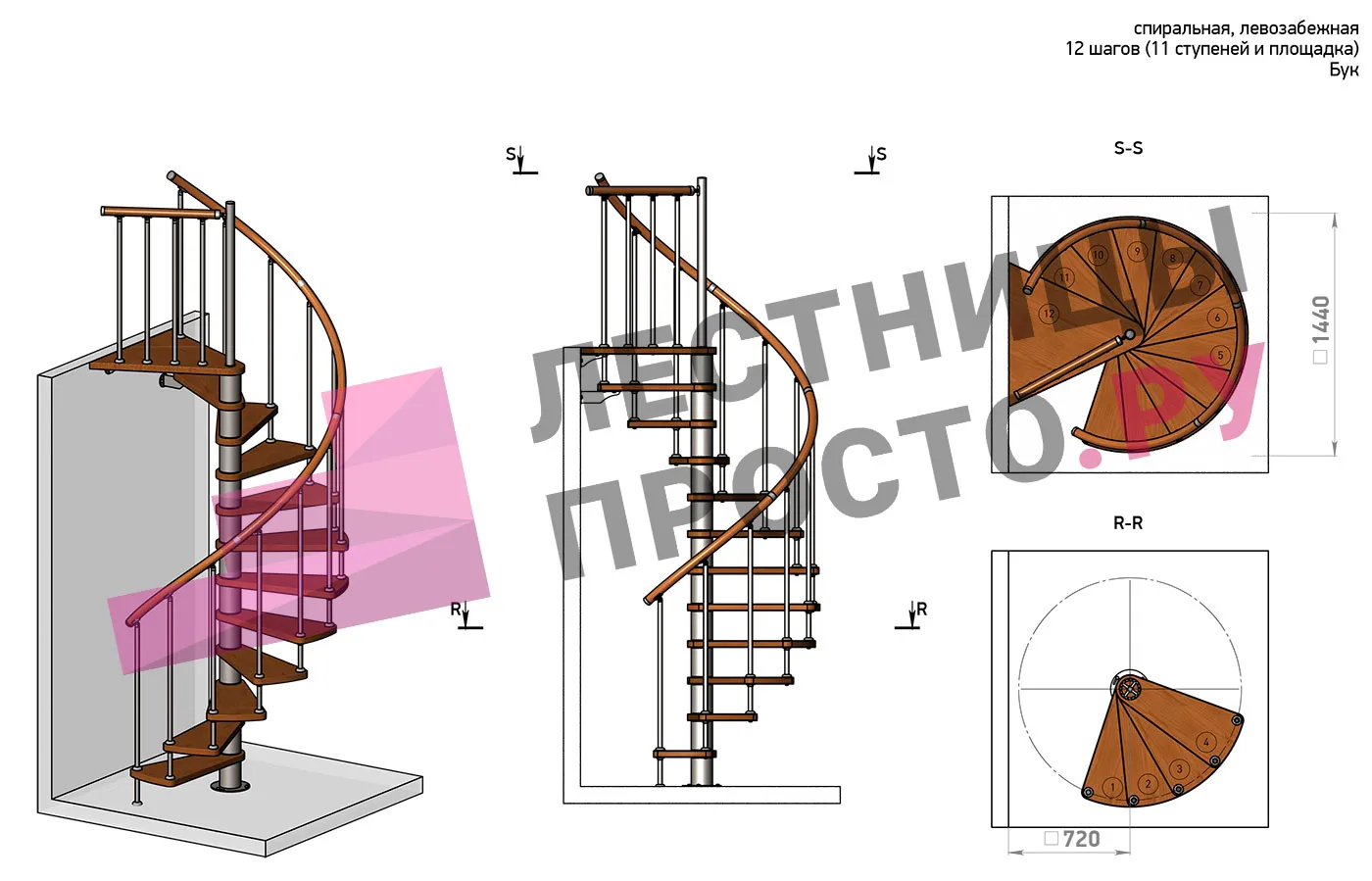 Правая, d=140см, 11 ступеней + площадка