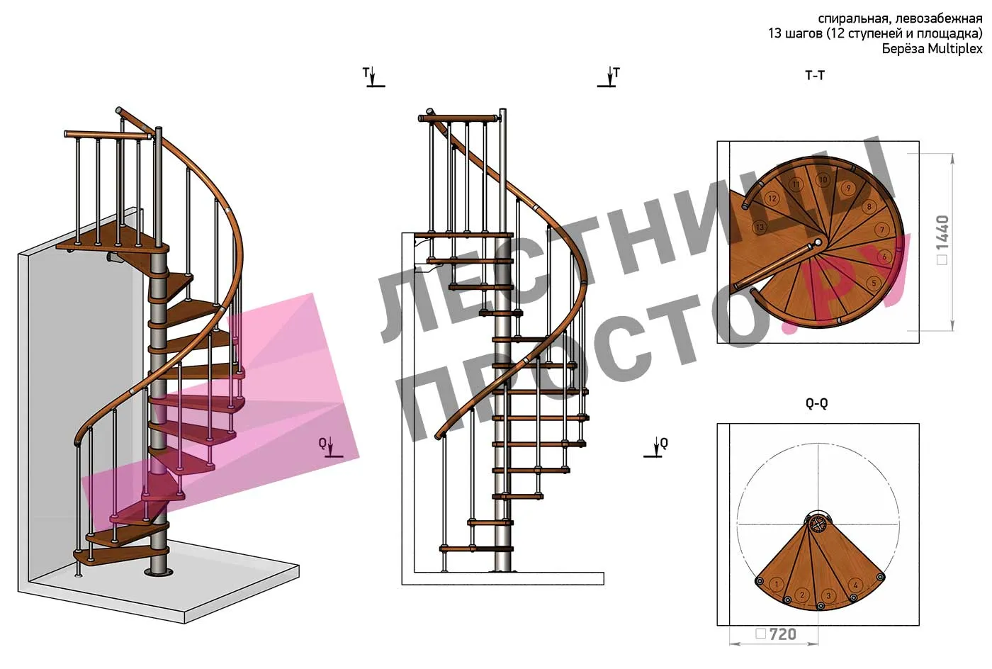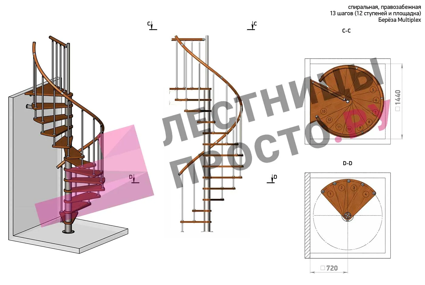Винтовая лестница Prosto Spiral White D140см, h275.7-313.9 см