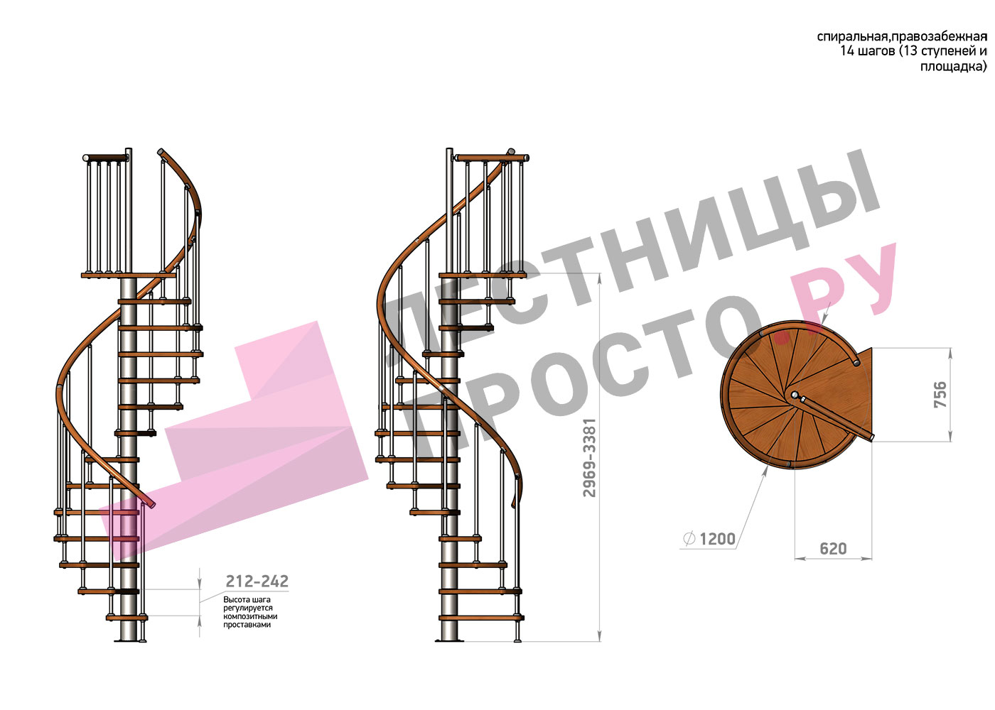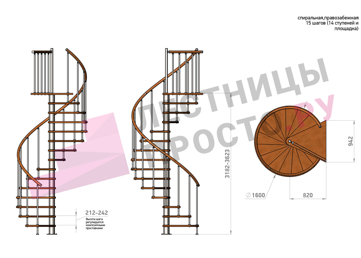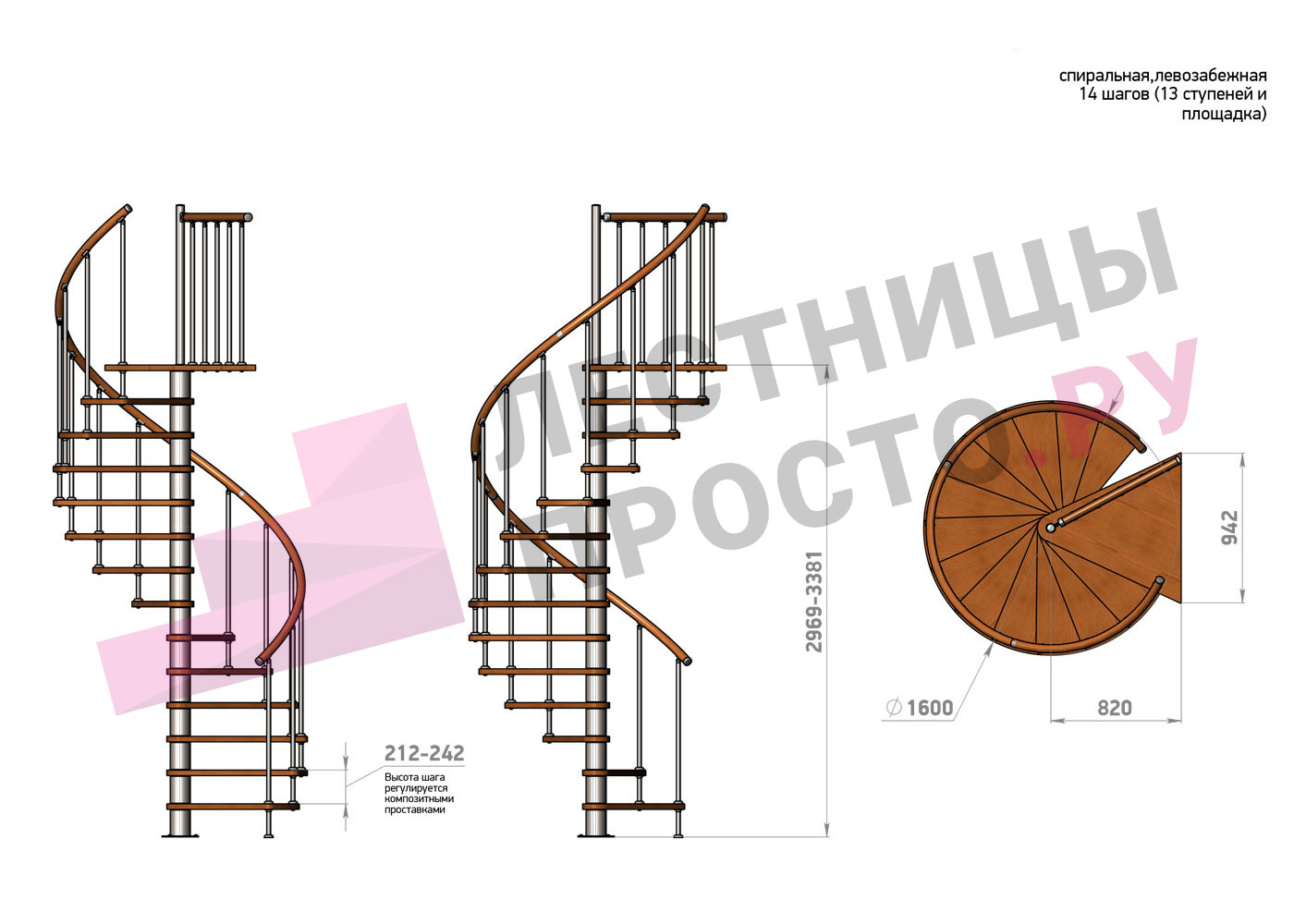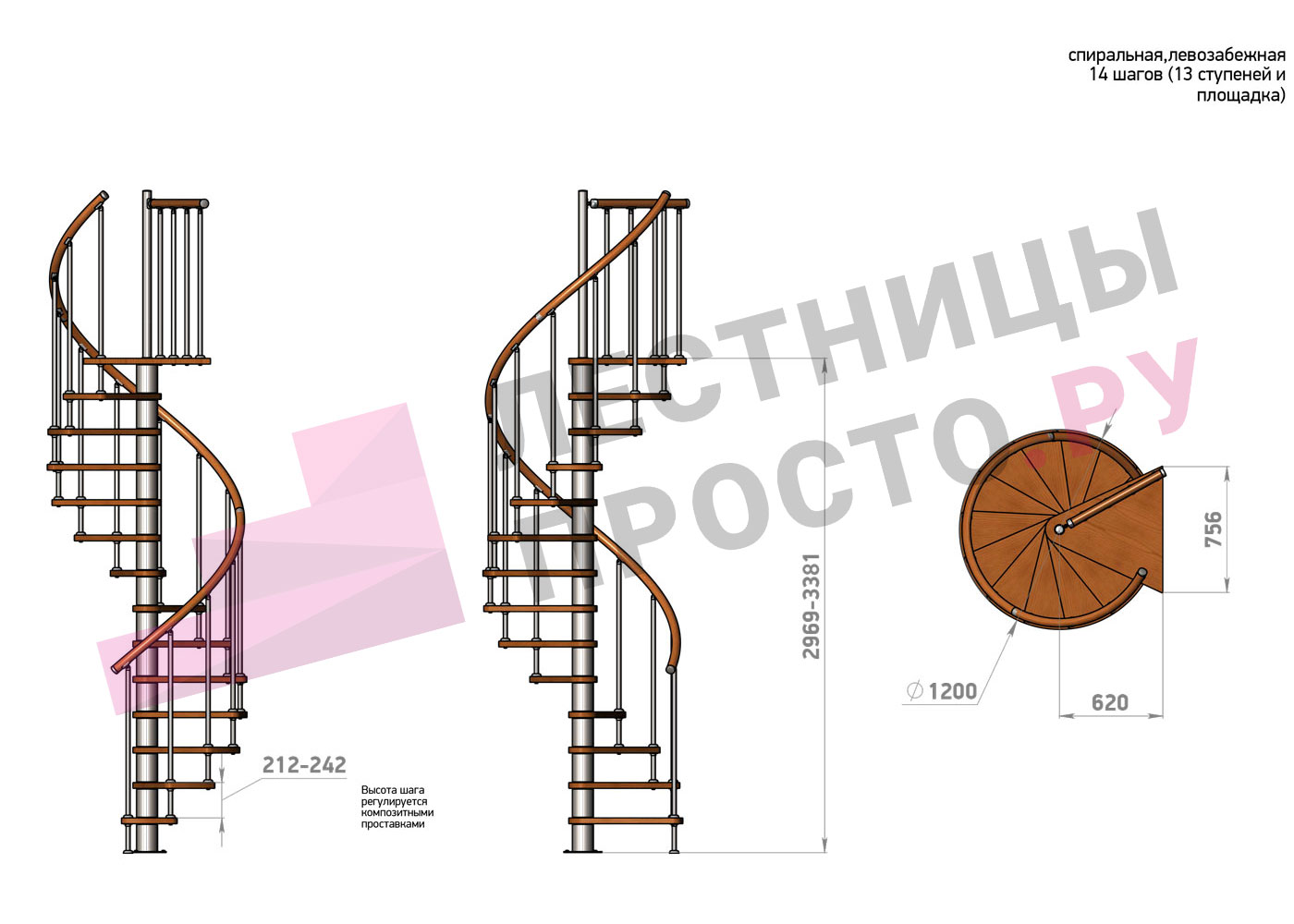 Винтовая лестница Prosto Spiral White/Высота 3182 - 3623 мм