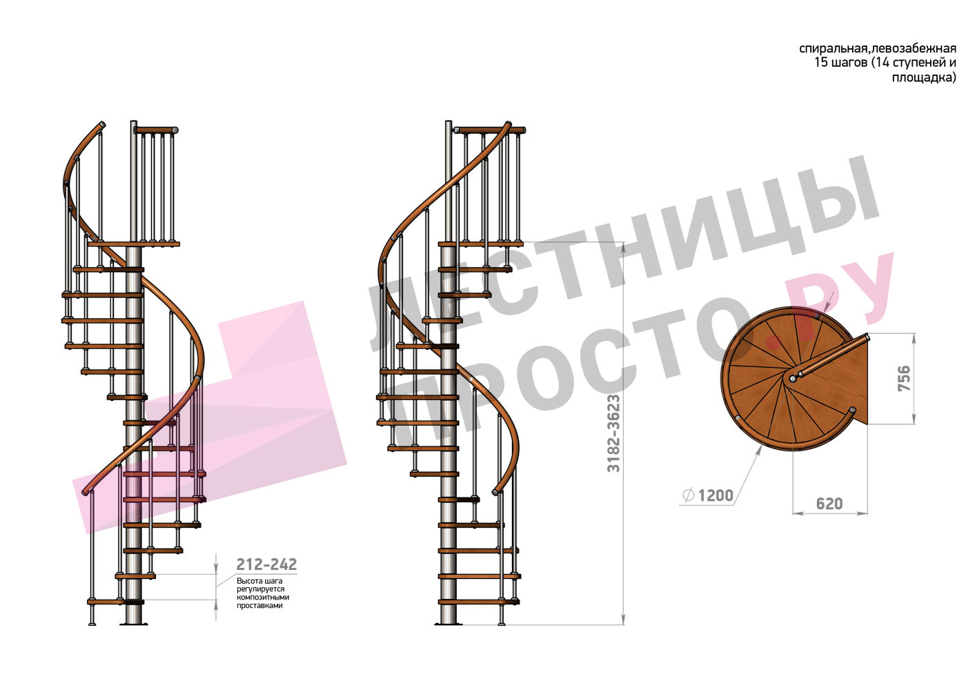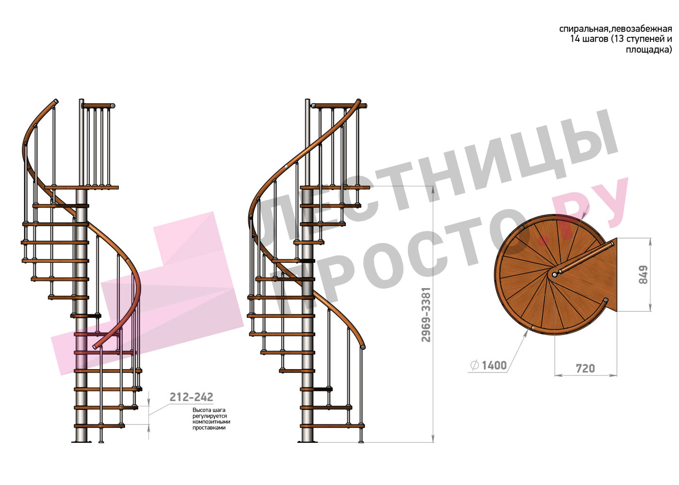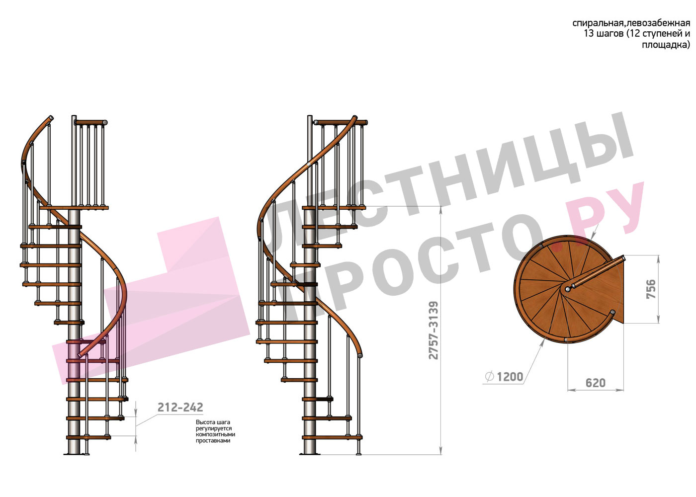 Винтовая лестница Prosto Spiral White/Высота 3182 - 3623 мм