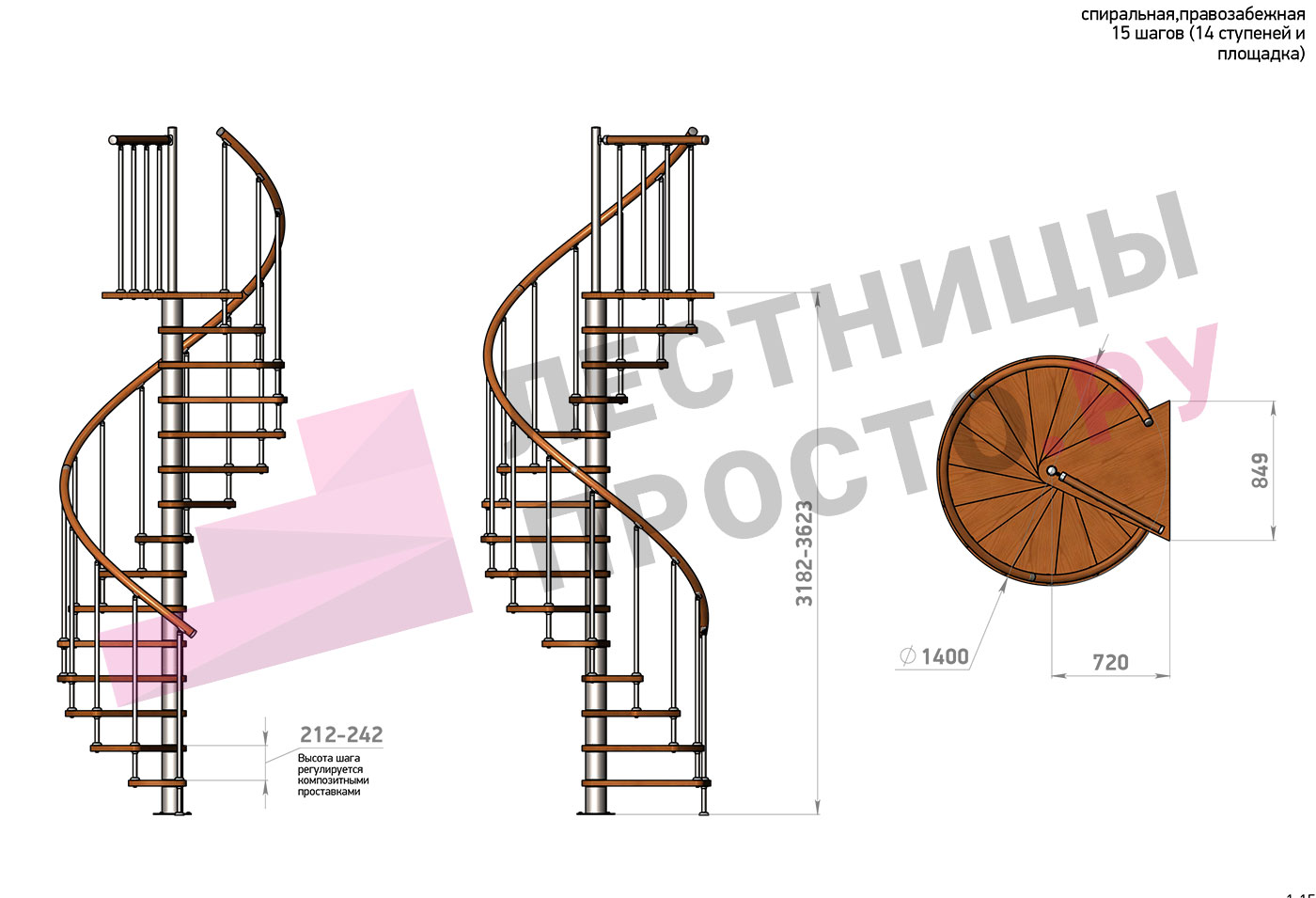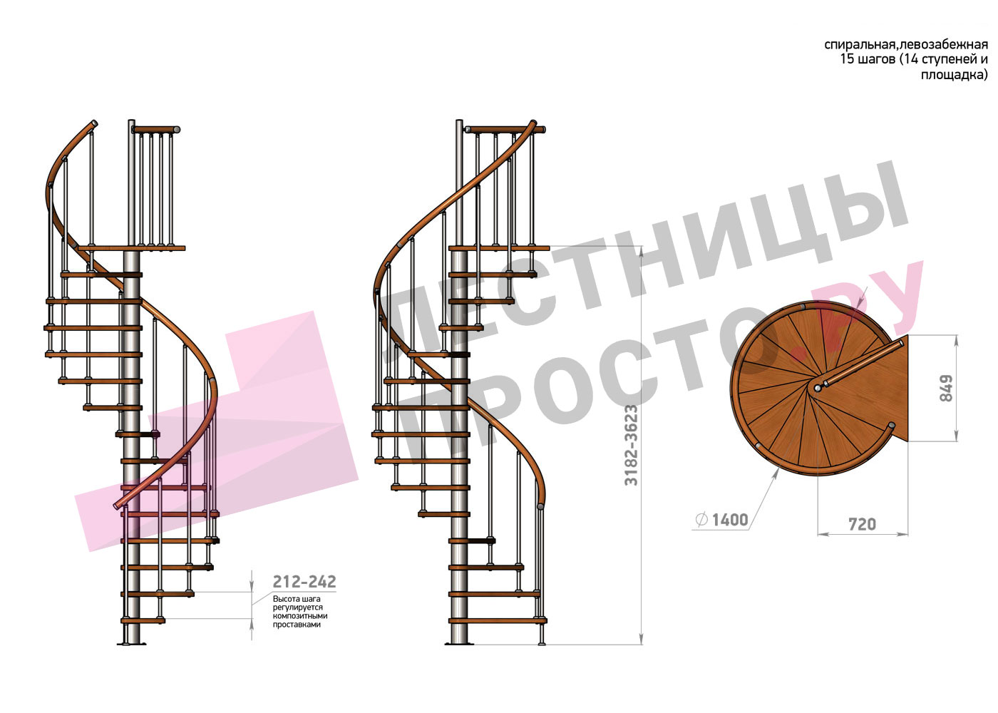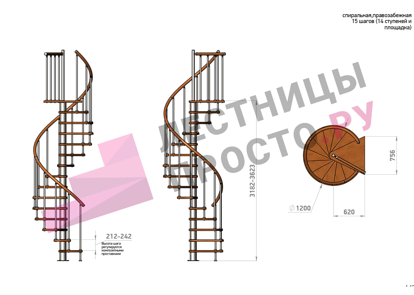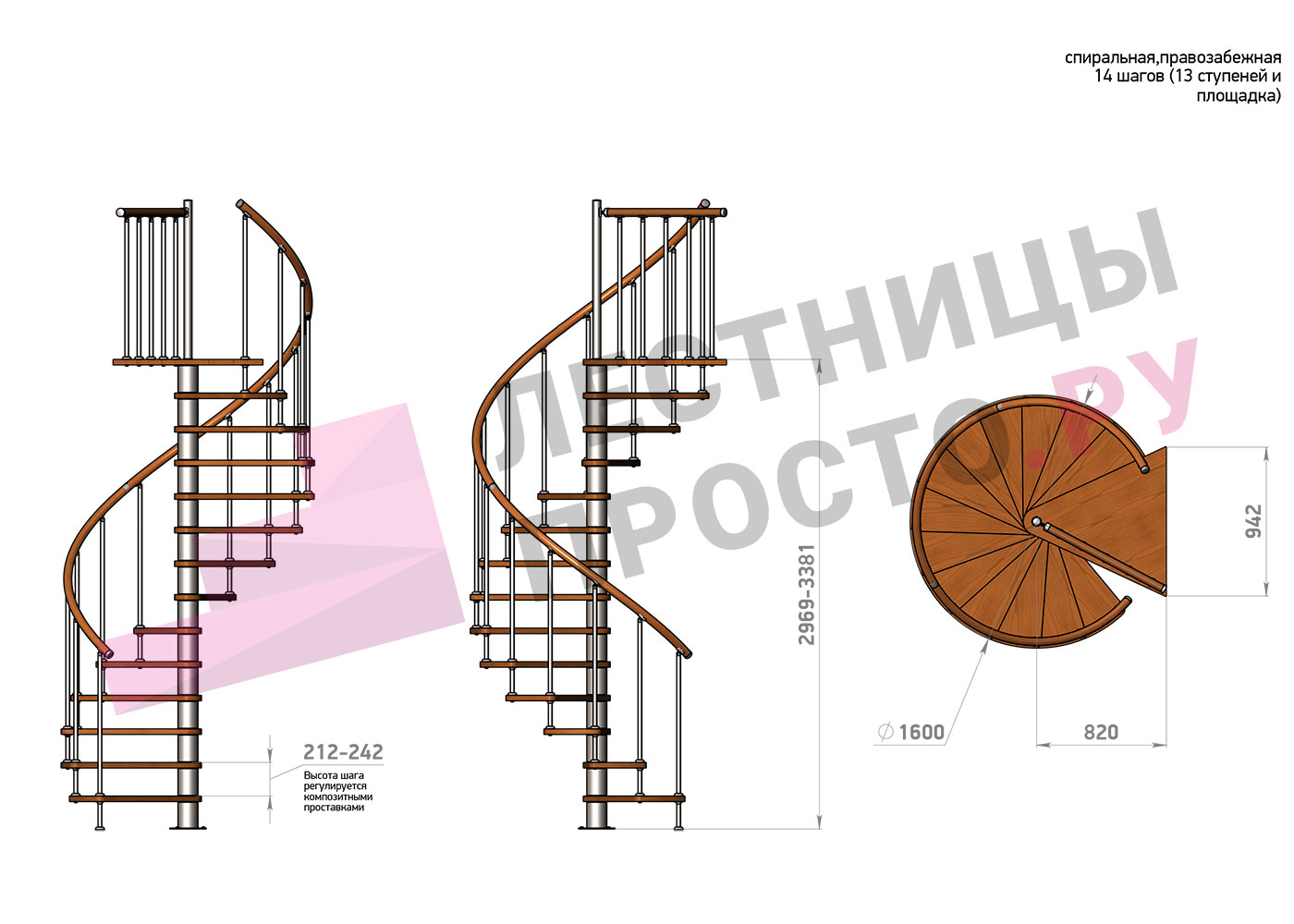 Винтовая лестница Prosto Spiral White/Высота 3182 - 3623 мм