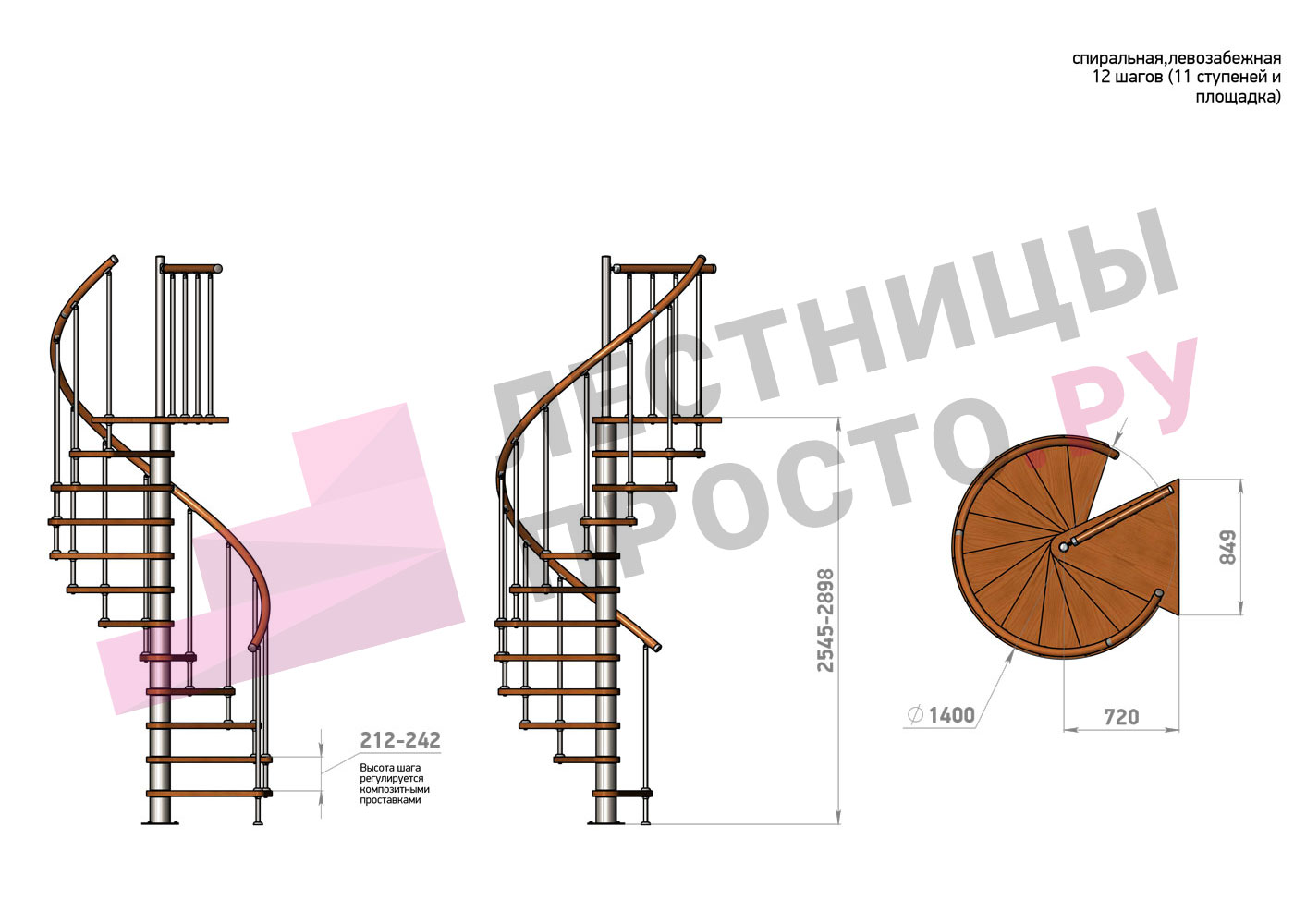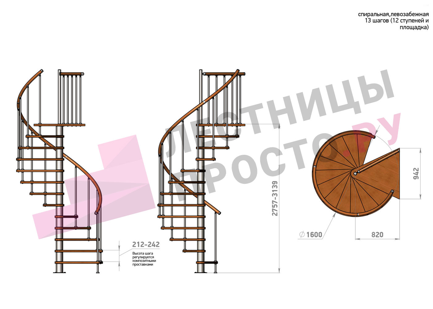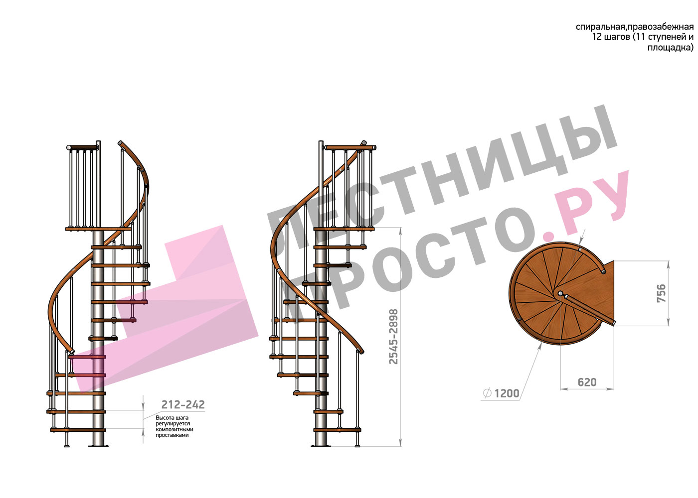 Винтовая лестница Prosto Spiral White/Высота 2545 - 2898 мм